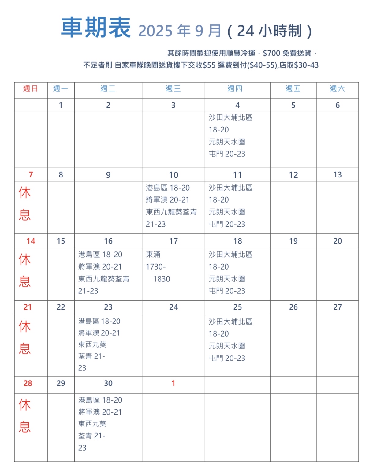 請參考9月車期表多謝